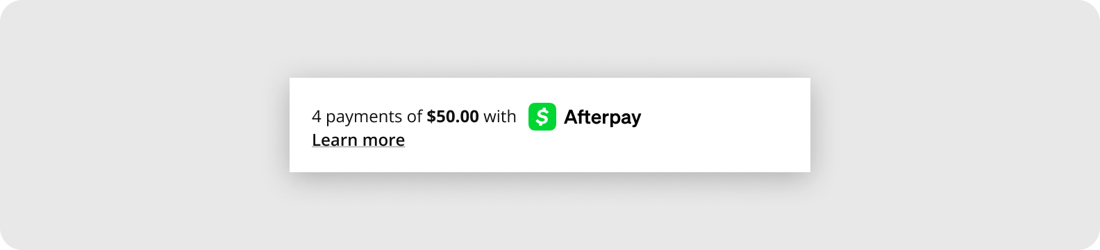 Afterpay Messaging informs your customers—as they browse—that pay by installments with Afterpay is available. This helps to improve your conversion rates and average order value.