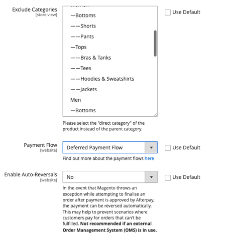 The above three settings are all read-only display fields. The information they display comes from the Cash App Afterpay API, so you cannot edit them here.