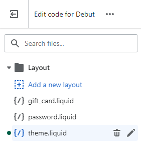 Under the Layout folder, click theme.liquid.