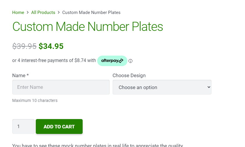 Below is an example of a Product Page with Cash App Afterpay messaging: