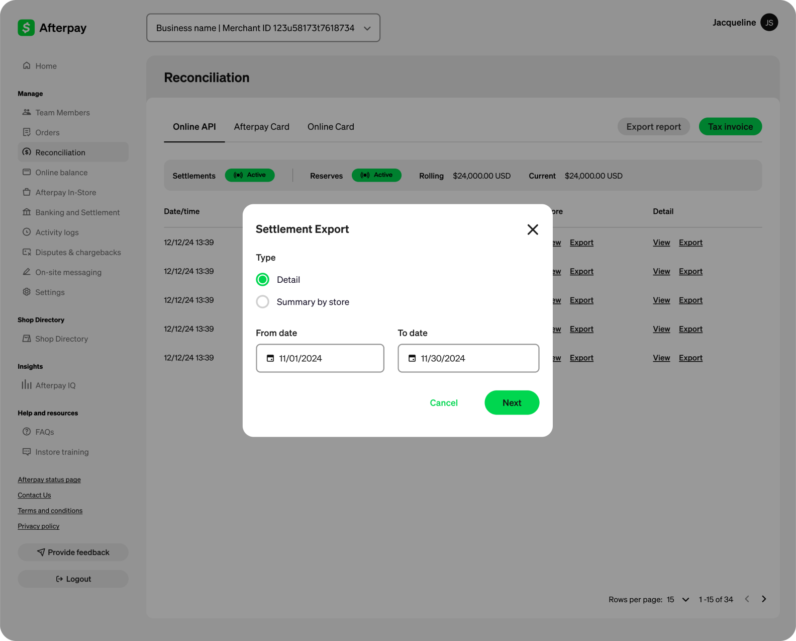 Settlement Reports explain in detail all payments made by Cash App Afterpay to you and help you to reconcile your accounts. There is one settlement report for each settlement to your bank account. Typically, there is one settlement every day that you capture a Cash App Afterpay order.