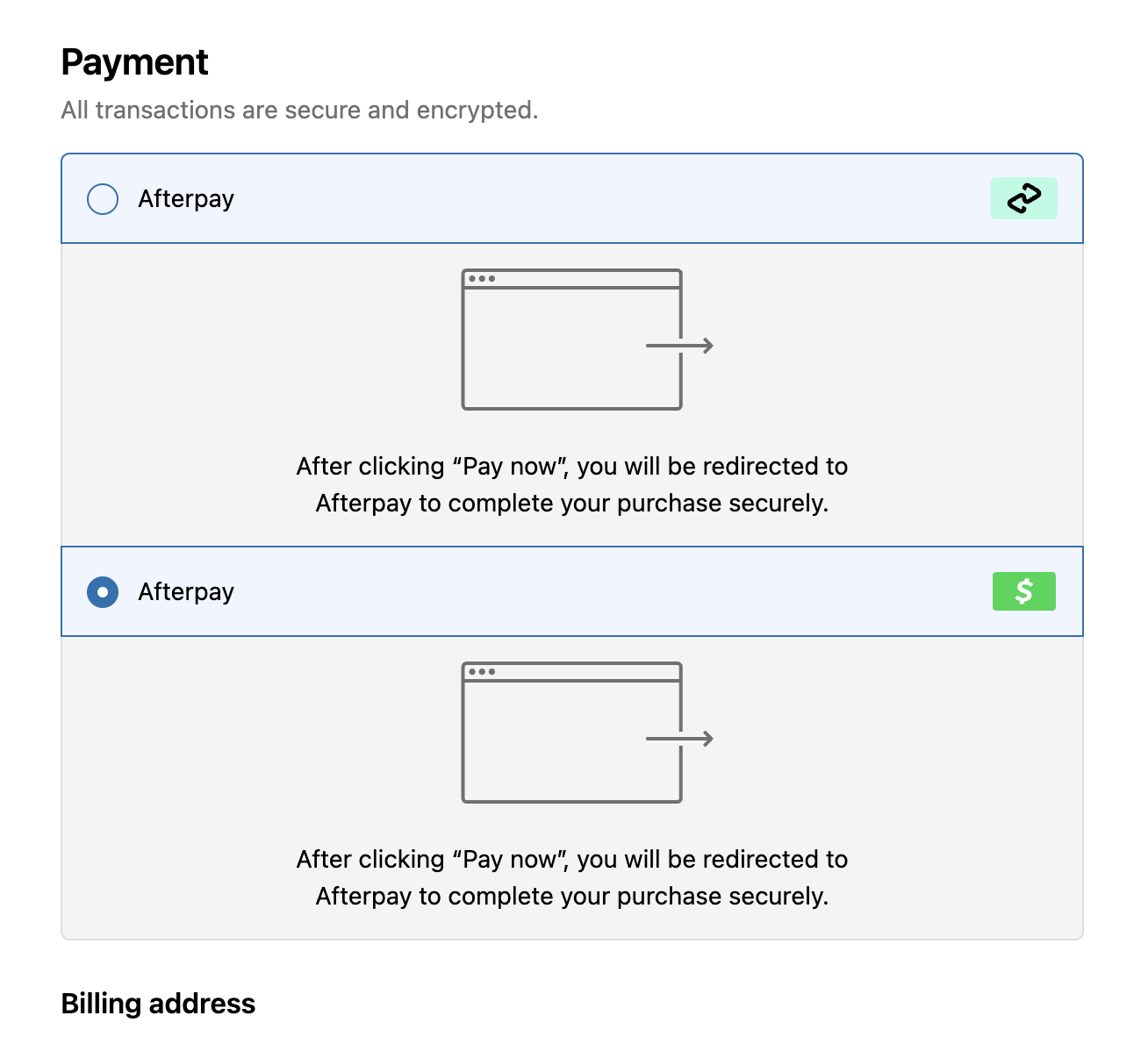 To avoid any issues with managing pre-migration Afterpay orders, we recommend keeping the Afterpay (New) app installed on your Shopify store.Afterpay appears twice at checkout