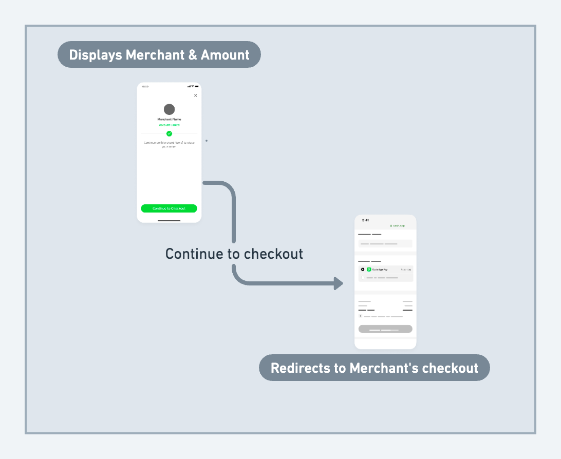 The Customer is redirected to Cash App, where the Merchant’s Business Name and Logo, transaction amount (optional), and Continue to checkout button is displayed.